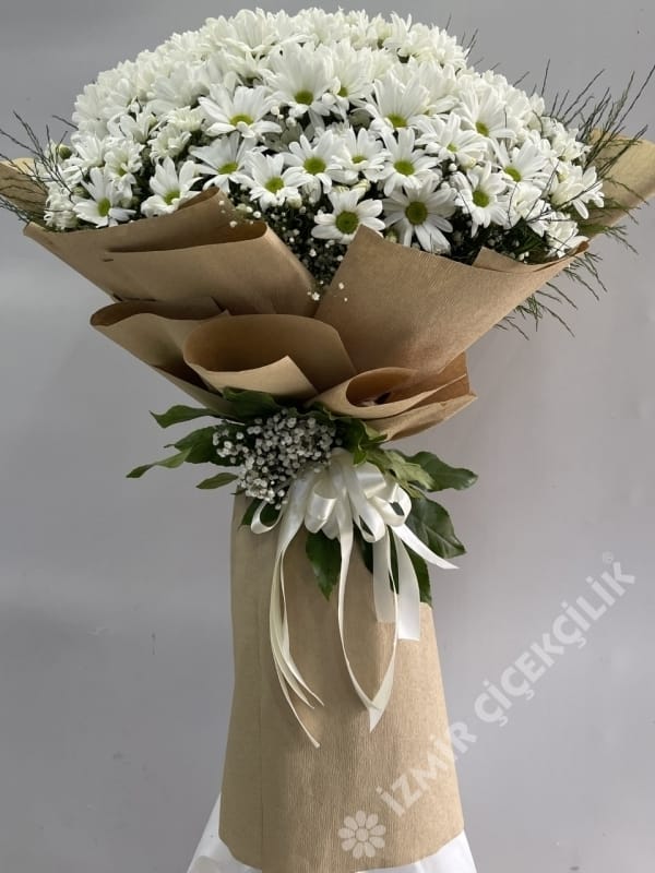 Paşabahçe vazo içerisinde ithal beyaz papatyalar ( Kır Çiçekleri) ile hazırlanmaktadır...