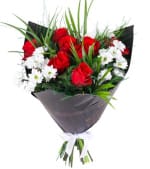 Kırmızı güller, okakiptus ve kurutulmuş lavanta kullanılarak hazırlanmıştır...
