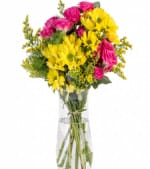 Pembe Çardak Güllerle Sarı Papatyaların şirin kuru portakal ve süs samanlarıyla sizin için tasarladık.