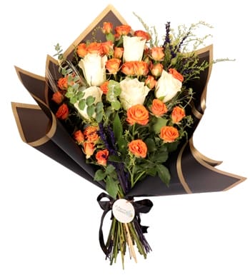 Turuncu Çardak Güllerle Beyaz Güllerin şirin kuru portakal ve süs samanlarıyla sizin için tasarladık.
